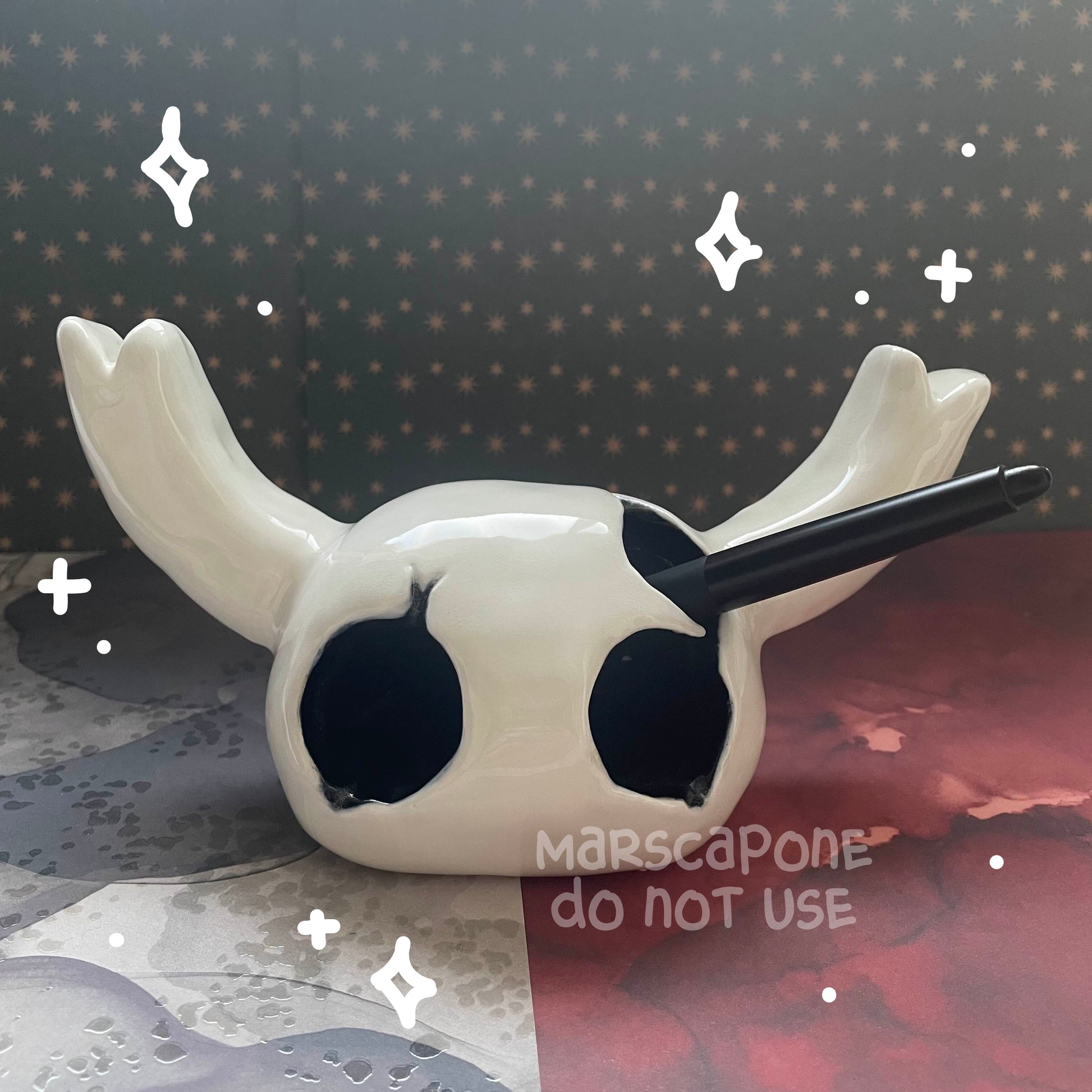 Handmade Ceramic Hollow Knight Mask that doubles as a pen holder!