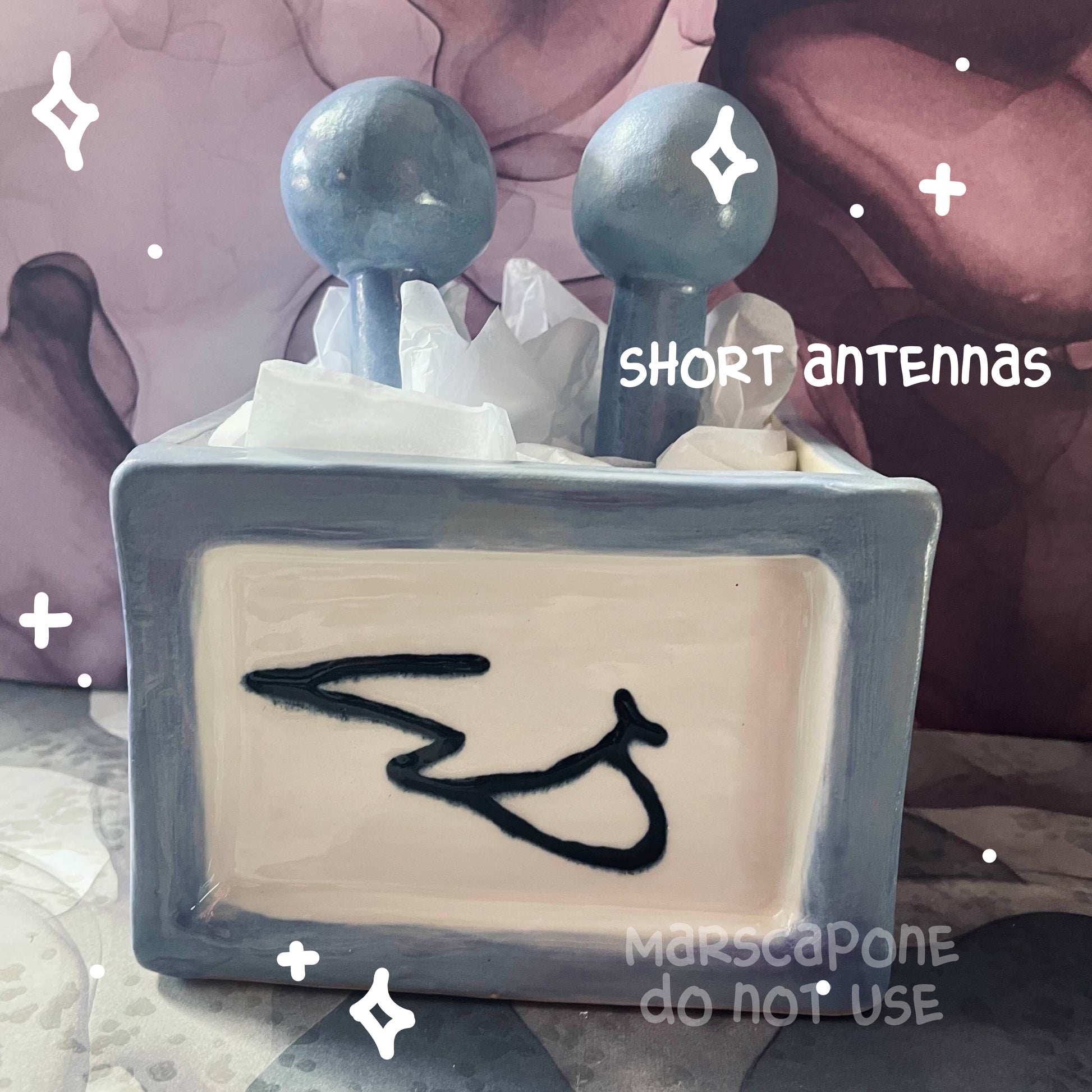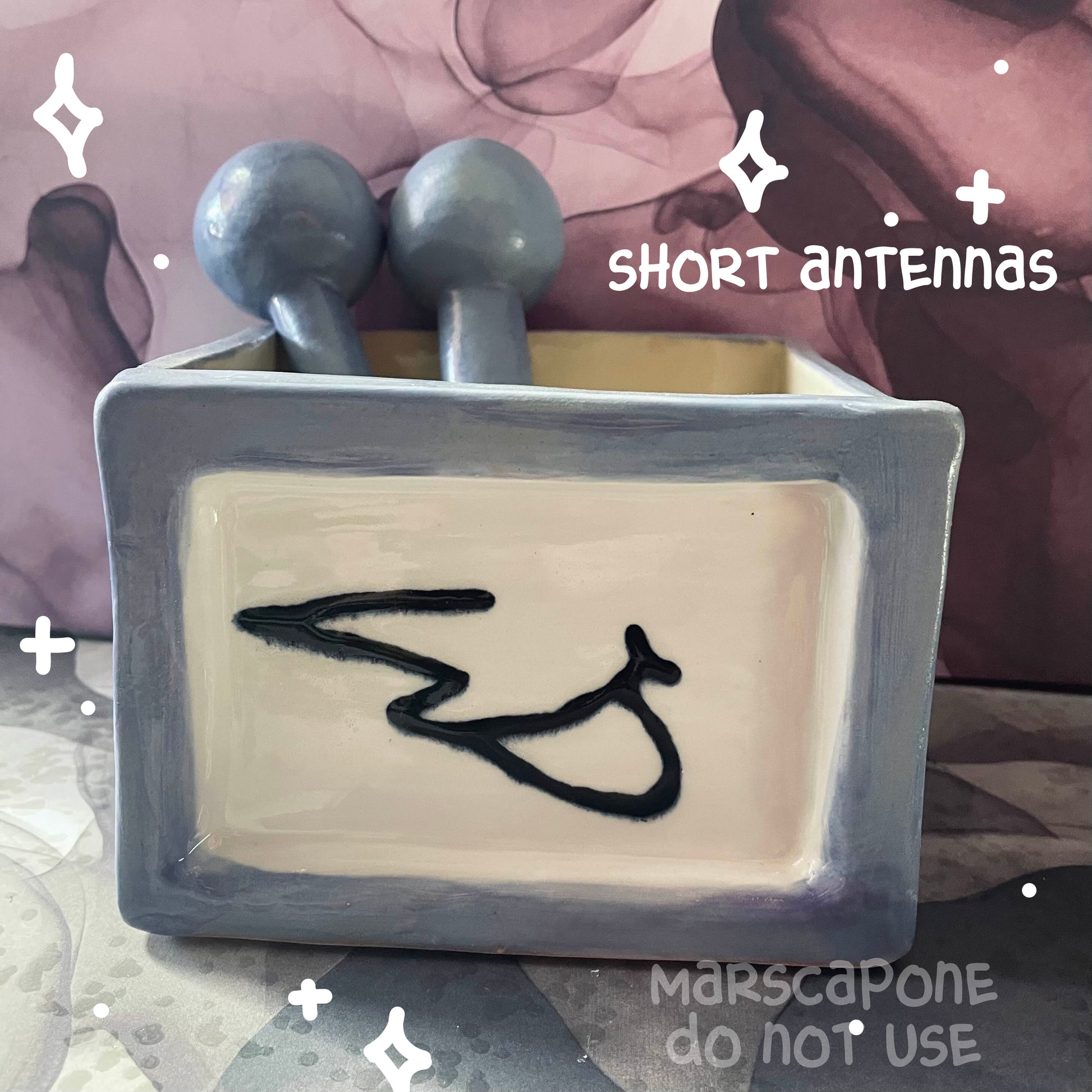 Tenna container with antenna included! The antennas are separate pieces which you can stick into anything you'd like to put into the container. I think that these would look cute with some moss planted inside :)