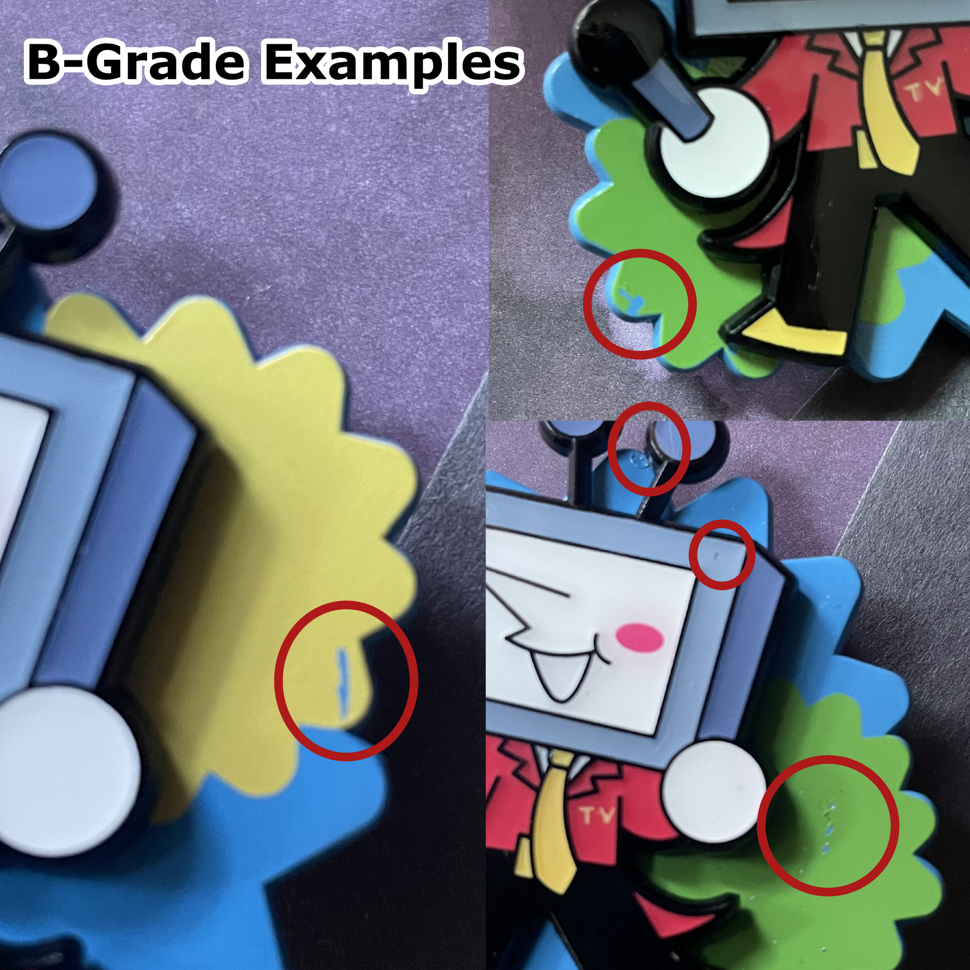B-Grade pins have flaws that are visible at an arm's length.