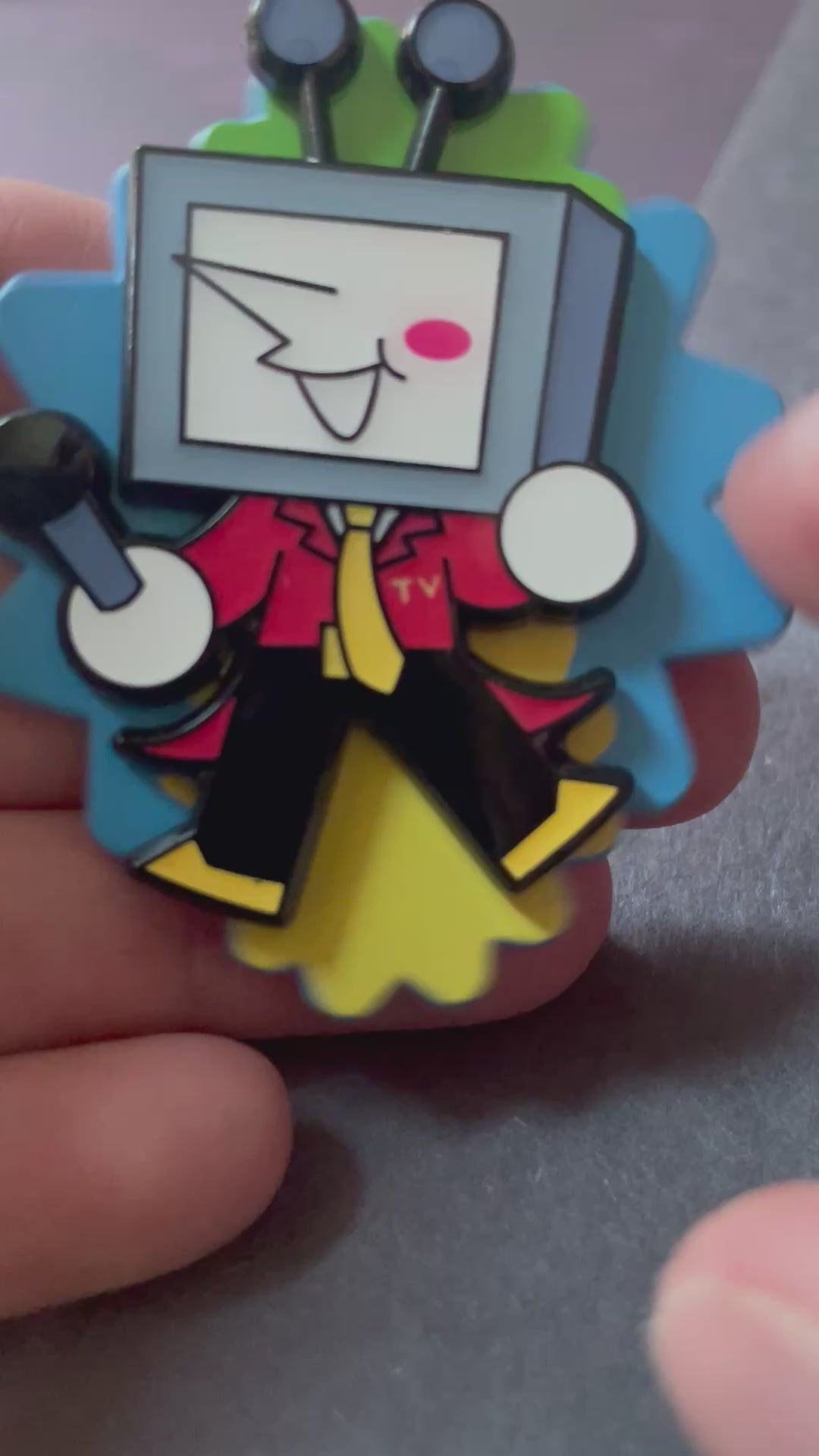 Deltarune Tenna soft enamel pin with resin filling! Black enamel with two spikes on the back.
